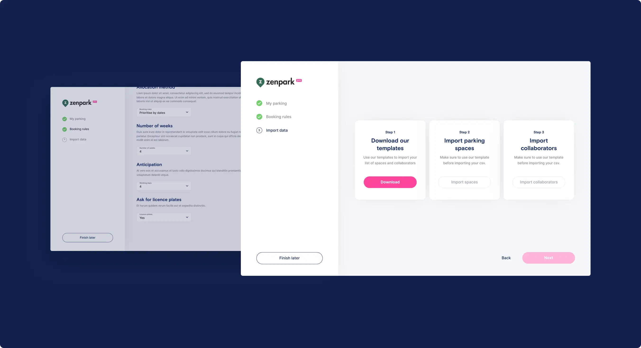 I designed a system close to the « pro » Zenpark brand, knowing this product will be just one piece of the new company offer.