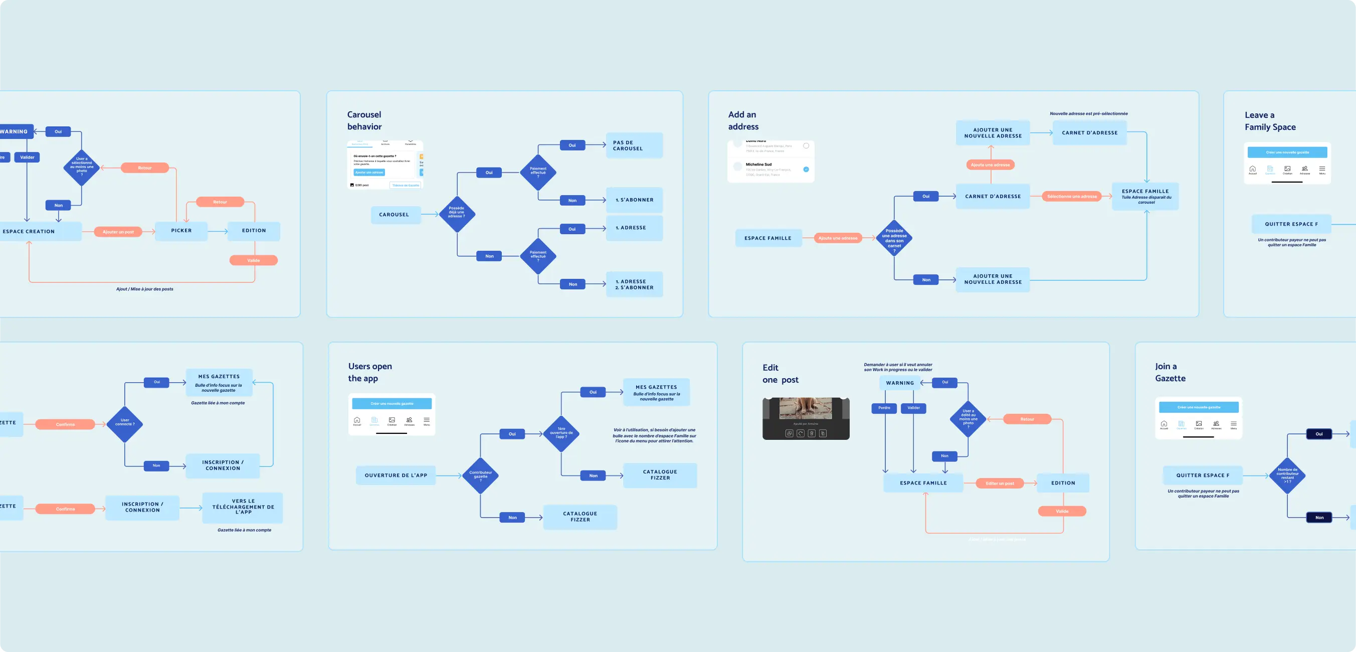 La Gazette Familiale is a very unique product within their offer, both in terms of business model and collaborative systems. The challenge here was to find a way to embed La Gazette in the existing app while keeping a seamless experience.