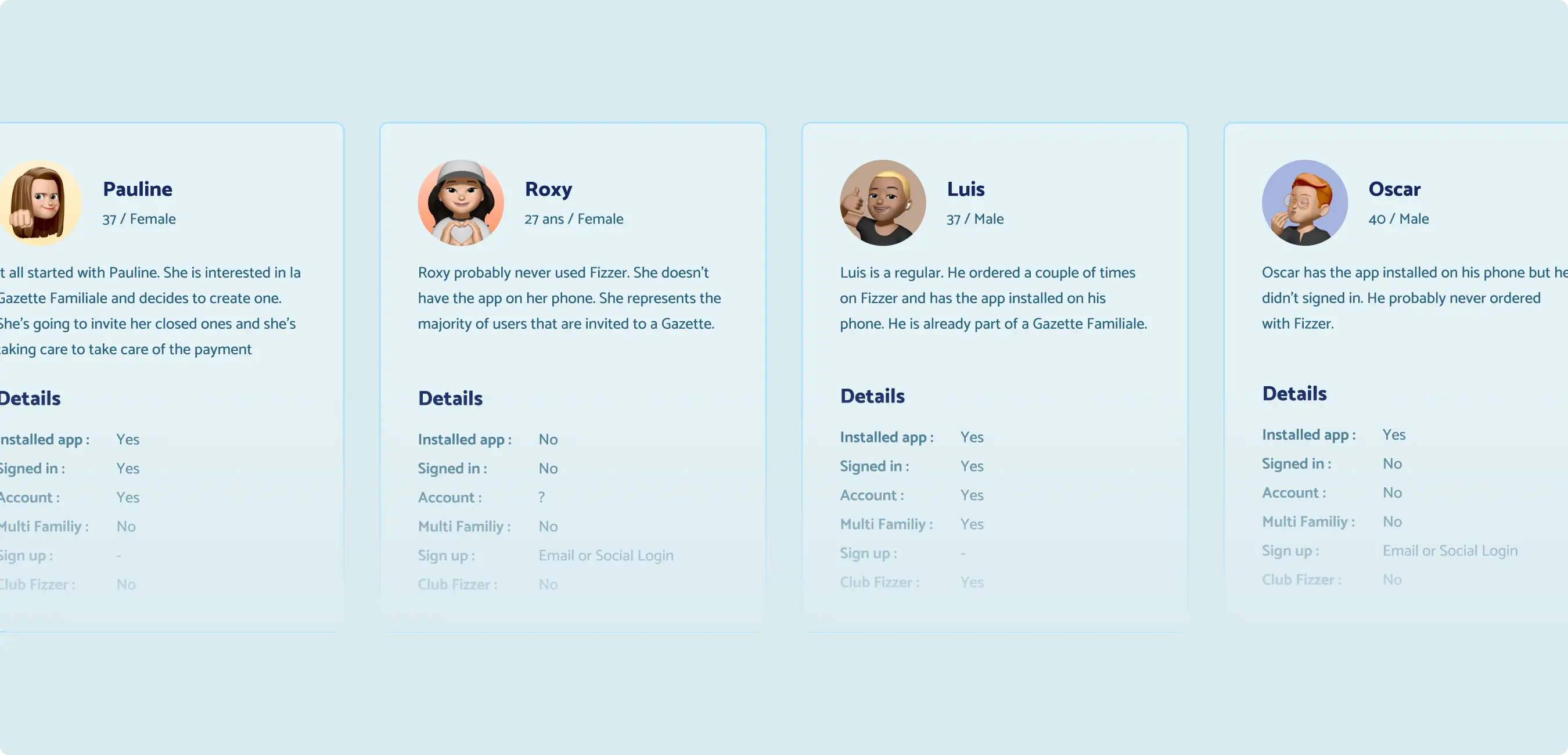 This new product implied different types of users (admin, free members, teenagers, parents…). It was key to work with personas to help us cover all user journeys. It was also important to share these scenarii early on with the development team since it would be the foundation of the UX that’ll be build after.